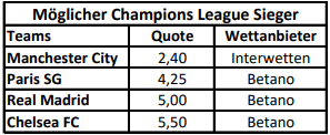 Der Gegner – Manchester City – gilt als Topfavorit auf den Champions League Titel.